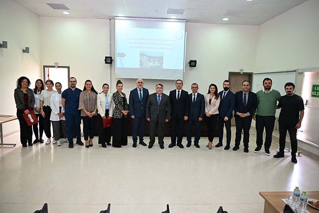 Diş Hekimliği Fakültesi Konferans Salonu’nda gerçekleşen toplantıya Diş Hekimliği Fakültesi Dekanı Prof. Dr. Emre Bodrumlu, Ağız ve Diş Sağlığı Uygulama ve Araştırma Merkezi Müdürü Prof. Dr. Mustafa Murat Koçak, Ahmet Erdoğan Sağlık Hizmetleri MYO Müdürü Prof. Dr. Sibel Koçak, Dekan Yardımcısı Profesör Dr. Baran Can Sağlam ve akademisyenler katıldı.