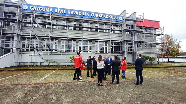 Çaycuma MYO’da ZBEÜ’nün ve TP-OTC ortaklığında açılan Açık Deniz Sondaj Teknolojisi ve Açık Deniz Tabanı Uygulamaları Teknolojisi programı öğrencilerinin İngilizce hazırlık eğitimlerinin yürütüleceği binayı gezen heyet, son aşamaya gelinen tadilat ve onarım çalışmalarını yerinde inceledi.