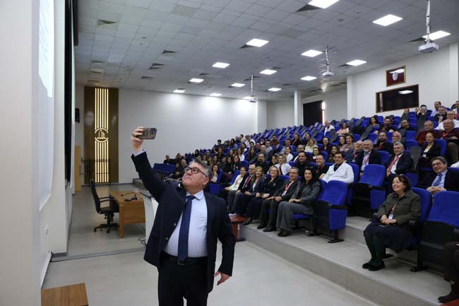 Belge takdiminin ardından konuşan Rektör Prof. Dr. İsmail Hakkı Özölçer, 2024-2025 Akademik Yılı’na ilişkin genel bir değerlendirmede bulundu. 2025-2026 Akademik Yılı Bahar Dönemi’nin üniversite ailesine hayırlı olmasını temenni eden Rektör Özölçer, Tıp Fakültesinin yürüttüğü nitelikli eğitim, araştırma ve uygulama çalışmalarının üniversitenin bilimsel gücüne ve sağlık alanındaki vizyonuna önemli katkılar sunduğunu ifade etti. Tıp Fakültesinin erişilebilirlik alanında elde ettiği başarıya da değinen Rektör Özölçer, kapsayıcı ve eşitlikçi yaklaşımı sayesinde fakültenin “Erişilebilirlik Belgesi” ve “Erişilebilirlik Logolu Bayrak” ile ödüllendirilmesinin, üniversitenin erişilebilir üniversite anlayışının somut bir göstergesi olduğunu vurguladı.