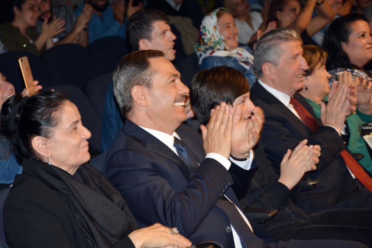 Etkinliğin sonunda Saime Toptan ve Tiyatro Grubunun Sanat Yönetmeni Funda Uğurluay'a çiçek ve teşekkür plaketi takdim eden Kdz. Ereğli Belediye Başkanı Hüseyin Uysal, gösteride emeği geçen herkese teşekkür etti.