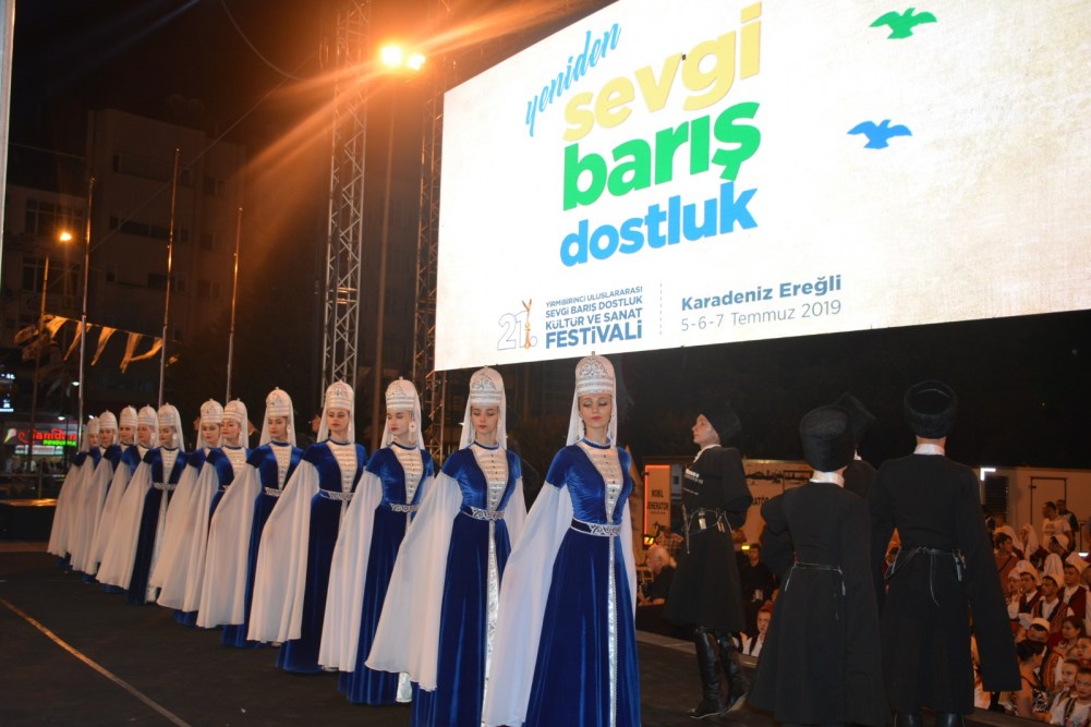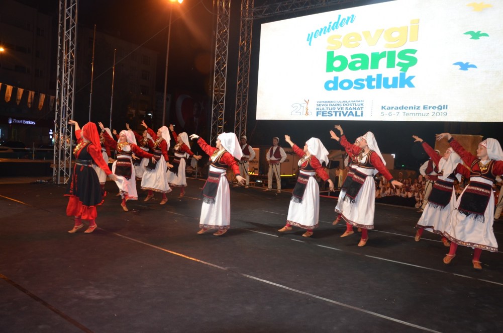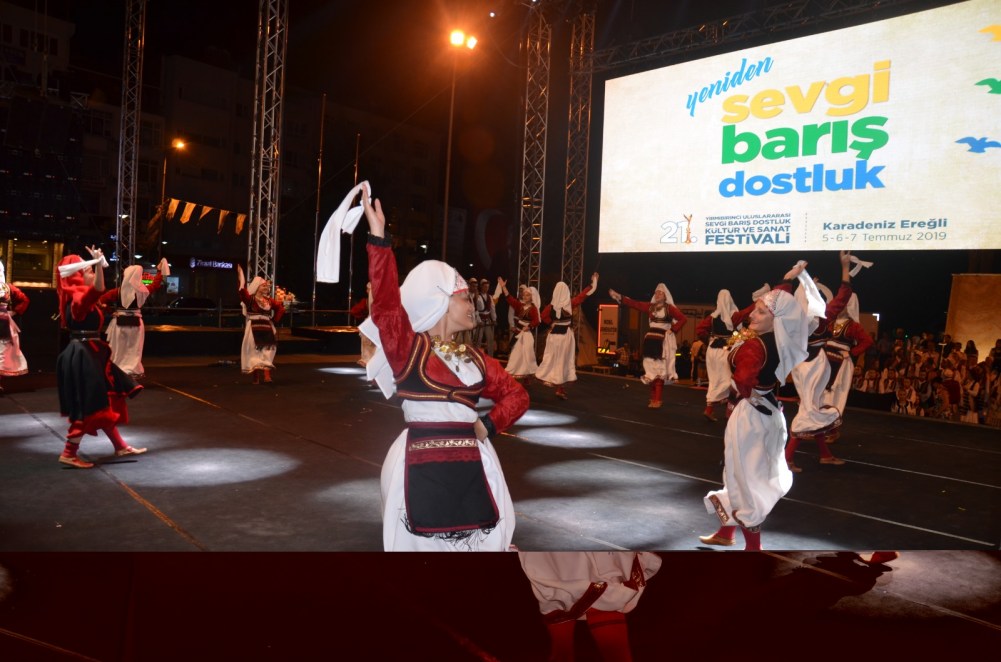 21.Sevgi, Barış, Dostluk Kültür ve Sanat Festivali’ne katılmak üzere Kdz. Ereğli’ye gelen 6 ülkenin halk dansları grupları oyunlarıyla festivale merhaba dedi.