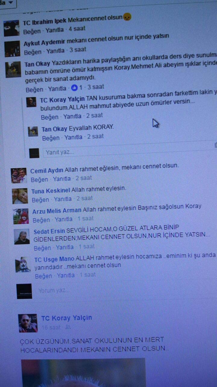 "Hocam Rabbim sizi nurlar içinde yatırsın... şu bana öğrettiğiniz hayat dersini anlatma vakti bugüne nasipmiş... sene 87 yada 88 sanat okulundayım. Hocam edebiyat dersime girerdi. Tabi hocam aksi bir o kadar korkuyoruz. Bir gün babam İzmir'e gider otobüsle, Renault Toros evin önünde. Tabii bende de yedek anahtar bastırmışım aracı aldım okula gittim. Şeklimiz on numara... Hemen beş arkadaş okulu kırdık, Zonguldak'a gezmeye gittik. Ehliyet yok çocuğuz. Öğleden sonra hocamın dersinden yazılımız var. Döneceğiz. Polis bizi ters yola girdik diye yakalar aracı parka çeker, bize ceza falan... Ben tutuşurum napıcaz diye.. Arkadaşlarım bizim yazılımız var biz gidiyoruz der ve beni orada bırakırlar... Bir şekilde ben aracı aldırdım ve Ereğli'ye döndüm. Sınava da giremedim... Yani Eylül'de gelll... Neyse rahmetli hocamla hep kristal işkembeci rahmetli Mahmut abinin orada karşılaşırdık. O da akşamları iki dubleyi çok severdi sanırım ondan. ''Hocam yazılıya giremedim bu sebepten'' dedim. Bana kızdı ve kaldın sen dedi. Arkadaşlarımın isimlerini sordu ve seni bırakıp gittiler mi dedi. Evet dedim. Bi hatırlat belki yazılı yaparım dedi. Hatırlattığımda da kızdı... neyse can alıcı nokta... karne aldık ben edebiyattan geçmiştim, Beni satan arkadaşlarımın hepsi Eylül'e kalmıştı... Tabii herkes benim karneme bakıyor ben geçmişim. İtiraz itiraz hocama...