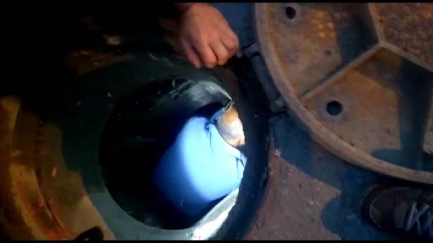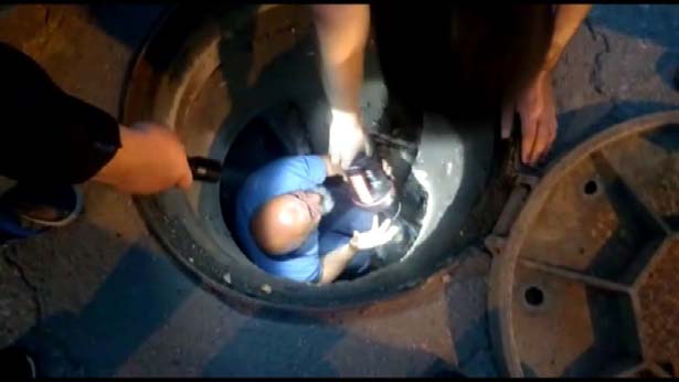 Rögara sıkışan köpeği bakın nasıl kurtardı?