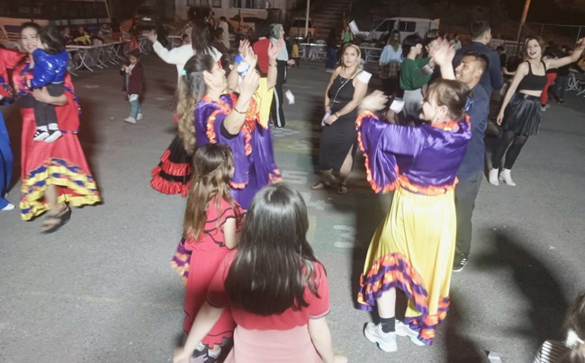 Okul bahçesinde yapılan etkinlikte ateş yakılmazken, Roman vatandaşlar kendi kültürlerini yansıtan kıyafetlerle yöreye ve yine kendilerine özgü müzikler eşliğinde gönüllerince eğlendiler.
