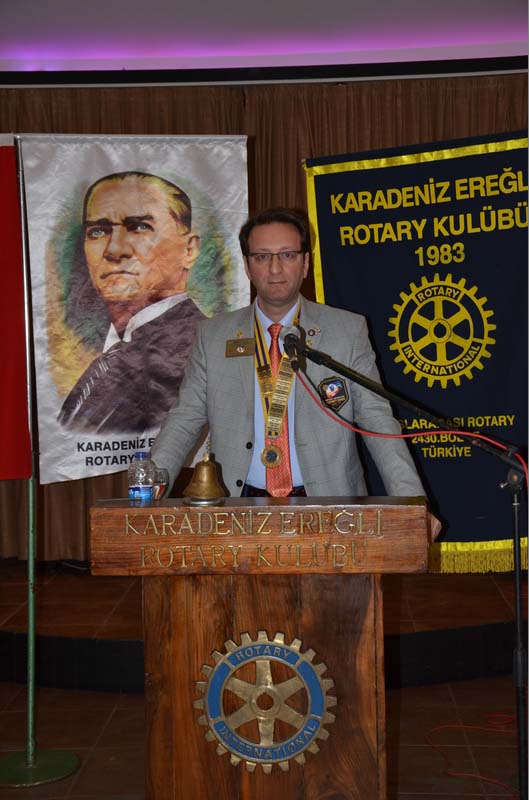 Her Rotaryen üyemizin, hizmet idealini kendi kişisel, iş ve toplum hayatına uygulaması ve böylece topluma örnek olması için kendisini ve çevresini teşvik eden projeler geliştiririz. Bizim gibi hizmet idealinde birleşmiş iş ve meslek sahipleri arasında Dünya çapında dostluk ilişkileri kurarak anlayışı, iyi niyeti ve barışı geliştirecek uluslararası projeler yaparız. Bugün de burada toplanarak kuruluşumuzun en saygın çalışmalarından birini yerine getirebilmenin onurunu yaşıyoruz. Siz Sayın Ramazan Yıldırım ve Siz Sayın Özden Şekerleme meslek hayatınız boyunca; Yaptığınız başarılı çalışmalar ile hem meslektaşlarınıza hem de bizlere örnek oldunuz. Çalışmalarınızla meslekte yüksek ahlaki standartların yaygınlaşmasını teşvik ediyor ve özellikle genç meslek sahiplerini yüreklendirerek onların da yararlı çalışmaları için önder oluyorsunuz. Karadeniz Ereğli Rotary Kulübü olarak, iş ve meslek onurunuzu, gösterdiğiniz bu ışığı ve hizmet idealimizi yücelten bu katkılarınızı şükran ile anıyor ve bugün takdim edeceğimiz Rotary Meslek Ödülü ile bu onuru kuşaklara aktarmak istiyoruz." dedi. Sonrasında; tüm üye ve üye eşleri ile, misafir katılımcıların 14 Şubat Sevgililer gününü kısaca tarihinden bahseden dönem başkanı Mert Öztürk, müzik eşliğinde tüm üyeleri ve misafirleri ile 14 Şubat Sevgililer gününü kutladı."