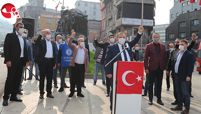 Emeğin Başkenti Zonguldak’ta Madenci Anıtı’nda düzenlenen TÜRK-İŞ’in basın açıklamasını Genel Maden İşçileri Sendikası (GMİS) Genel Mali Sekreteri Volkan Yıldız yaptı.