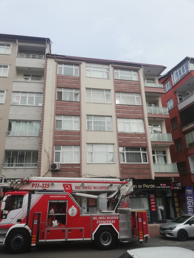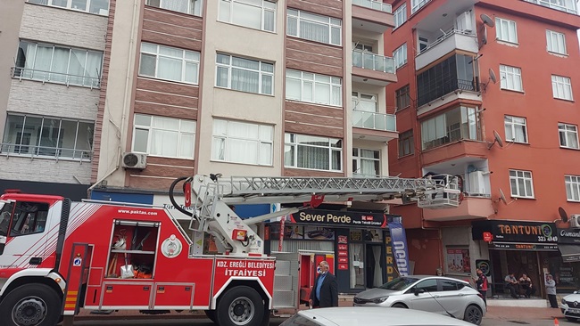 Zonguldak’ın Ereğli ilçesinde İtfaiye Ekiplerince Erdemir Caddesi üzerinde çatılardan parça düştüğü ihbarı üzerine çevrede çalışma yaptı.