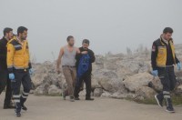 kayalıklara geldi. Elindeki kesici aletle kendini yaralayan Murat A.'yı gören
