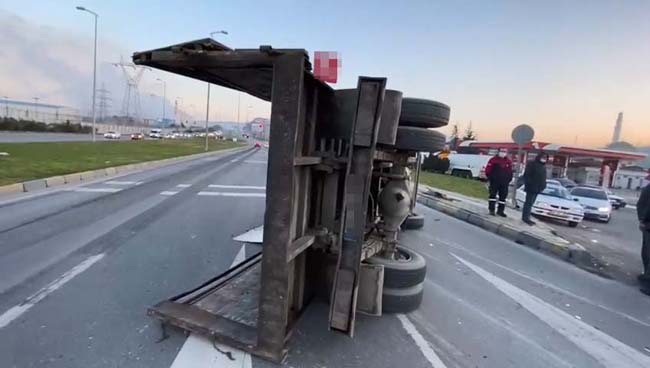 Zonguldak’ın Ereğli ilçesinde sac yüklü kamyon sürücüsünün direksiyon hâkimiyetini kaybetmesi sonucu yan yattı.