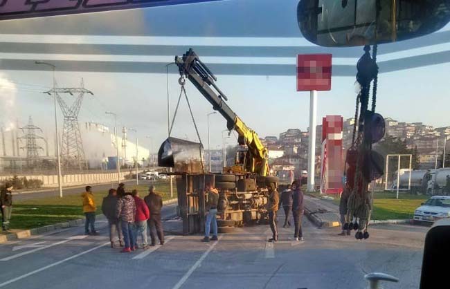 Kaza, ilçeye bağlı Kışla Mahallesi Sanayi girişinde meydana geldi. 67 ZL 483 plakalı kamyon sürücüsünün direksiyon hâkimiyetini kaybetmesi sonucu yan yattı. Olay yerine gelen polis ekipleri yolda dubalarla güvenlik önlemi alarak, trafiği kontrollü olarak tek şeritten sağladı. Kaza yapan kamyonun sac yüklü olduğu görüldü. Şoför kazadan yara almadan kurtulurken, kamyon olay yerine gelen çekici yardımıyla yoldan kaldırıldı. Polis ekipleri tarafından kaza ile ilgili rapor tutuldu.