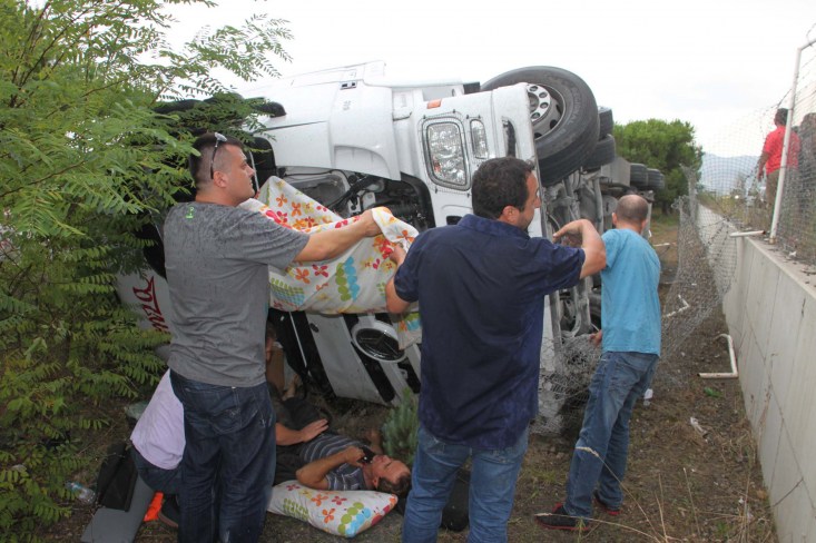 Kazada yaralanan sürücü, TIR'ın içerisinden vatandaşlar tarafından dışarı
