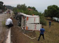 SAC YÜKLÜ TIR DEVRİLDİ: 1 YARALI