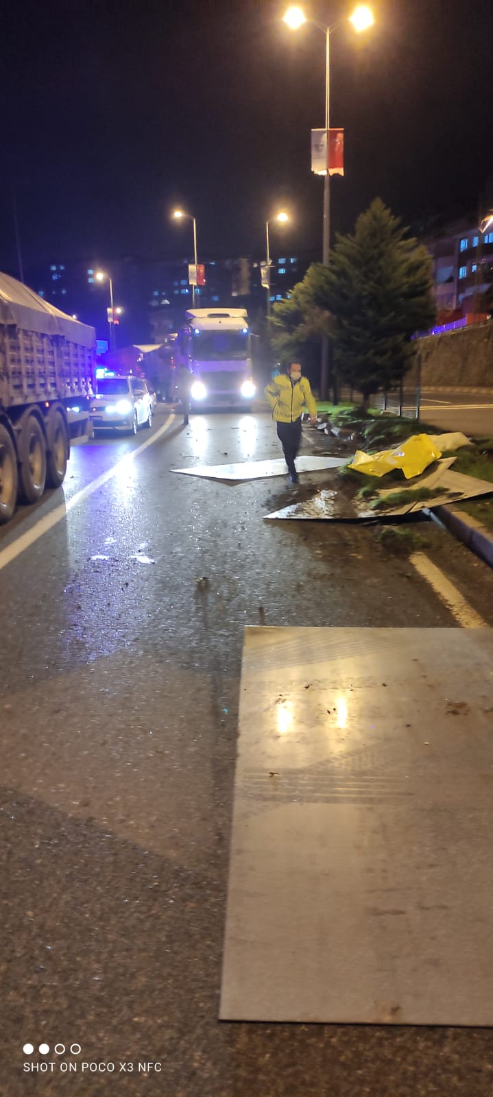 Zonguldak’ın Alaplı ilçesinde viraja hızlı giren TIR’ın dorsesinde bulunan saçlar yola döküldü.