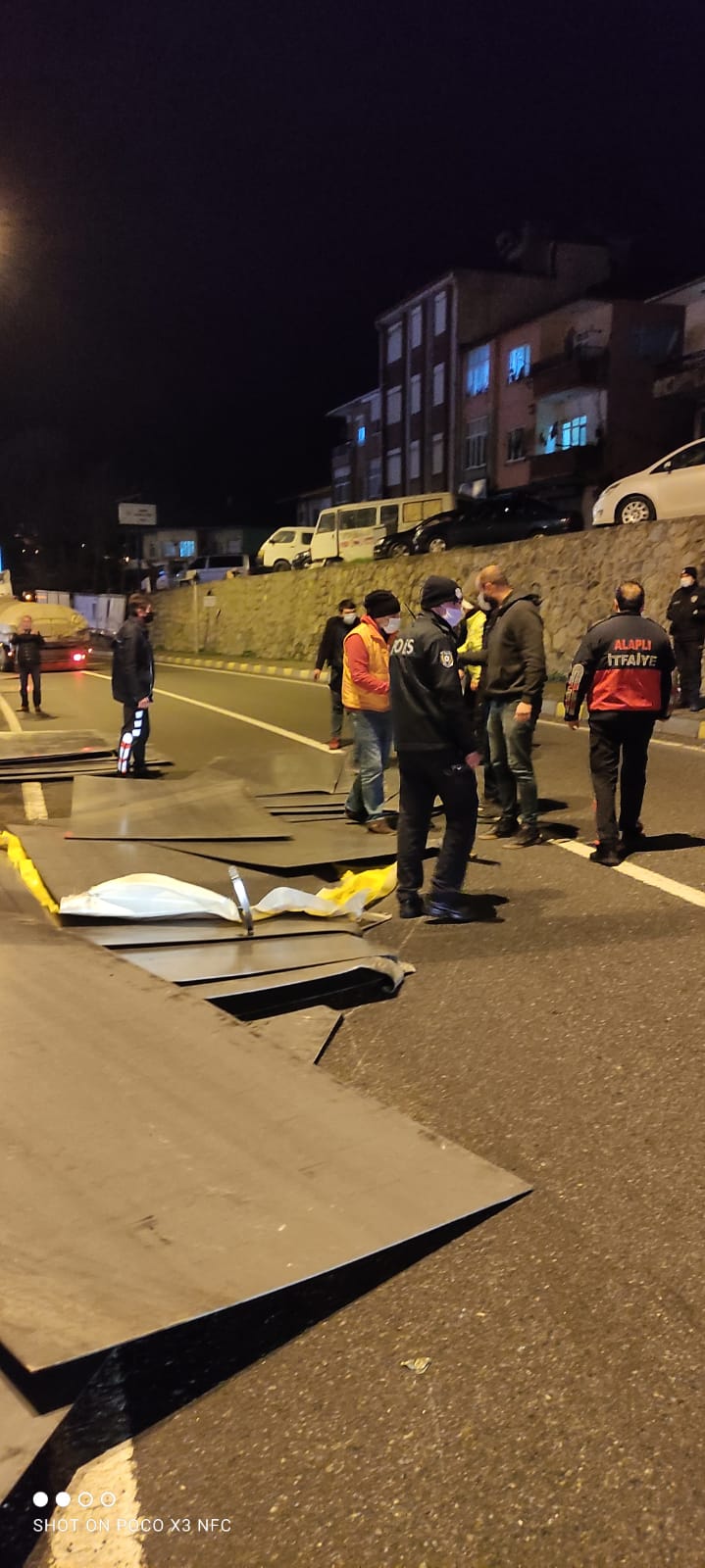Olay akşam saatlerinde Alaplı girişinde meydana geldi. İddiaya göre Ereğli istikametinden Alaplı istikametine seyir halindeki TIR'ın viraja hızlı girmesi sonucu dorsesinde bulunan saclar yola döküldü. Sacların karşı yola fırlamasıyla yolda bulunan teller zarar görürken o esnada yoldan başka aracın geçmemesi ise meydana gelebilecek faciayı önledi. Trafik bir süre tek şeritten sağlanırken TIR’ın yoldan çekilmesi ve dökülen sacların başka bir araca yüklenmesiyle yol trafiğe açıldı.