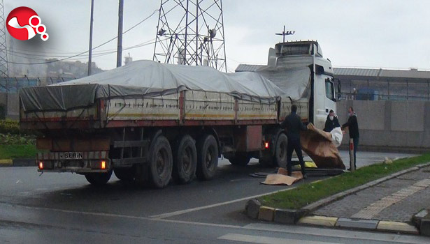 Zonguldak’ın Ereğli ilçesinde kavşağa hızlı giren TIR’ın dorsesinde bulunan saçlar yola döküldü.