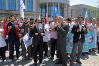 Erdem'in açıklamasının ardından yapılan saygı duruşu ve duadan sonra sağlık çalışanları dağıldı.
