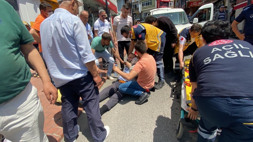 Karadeniz Ereğli ilçesinde Devlet hastanesine ait hizmet aracı yolun karşısına geçmek isteyen yaşlı adama çarptı. Kazada yaralıya araç içindeki sağlık personeli ilk müdahaleyi yaptı.