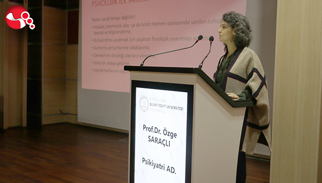 Zonguldak'ta sağlık çalışanlarına, "depremzedelere yaklaşımda psikoloji" eğitimi verildi. ZBEÜ Hastanesi Ruh Sağlığı ve Hastalıkları Anabilim Dalı Öğretim Üyesi Prof. Dr. Özge Saraçlı, "Sağlık çalışanları her zaman için karşısında yardım isteyen insanlarla çalışmaya alışıklar ama deprem ekstra bazı zorluklar getiriyor. Burada bizim bazı hastaların yakını yok. Tek başlarınalar. Aynı zamanda hasta yakını rollerini de telafi etmemiz gerekebiliyor" diye konuştu.