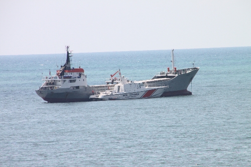 Zonguldak?ın Ereğli ilçesinde YUKKA isimli geminin batmasının ardından Karadeniz Bölge ve Garnizon Komutanlığı´na bağlı Sahil Güvenlik botları, liman içine demirleyen gemileri inceledi.