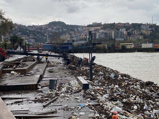Yaşanan afetin ardından Zonguldak Belediyesi ekipleri sahil bandında toplanan atıkları temizlemek için çalışma başlattı.