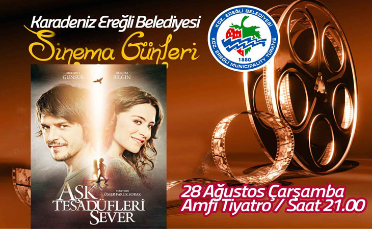 Kdz. Ereğli Belediyesi tarafından Amfi Tiyatroda 28 Ağustos Çarşamba günü saat 21.00'de Sinema günleri etkinliği kapsamında yurtiçi ve yurtdışında birçok ödül alan ' Aşk Tesadüfleri Sever' isimli film gösterilecek.