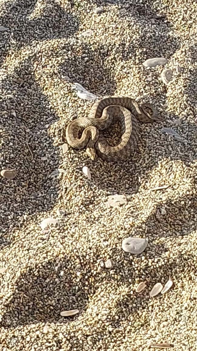 Zonguldak’ın Çaycuma ilçesi Filyos beldesi sahilinde yoğun kalabalığın olduğu zamanda kumun içinden zehirli olduğu tahmin edilen yılan panik yarattı.