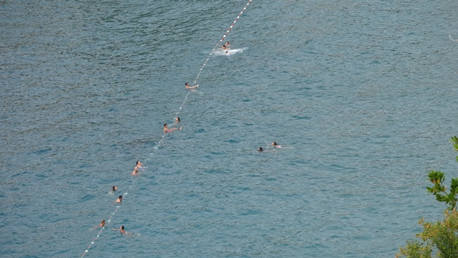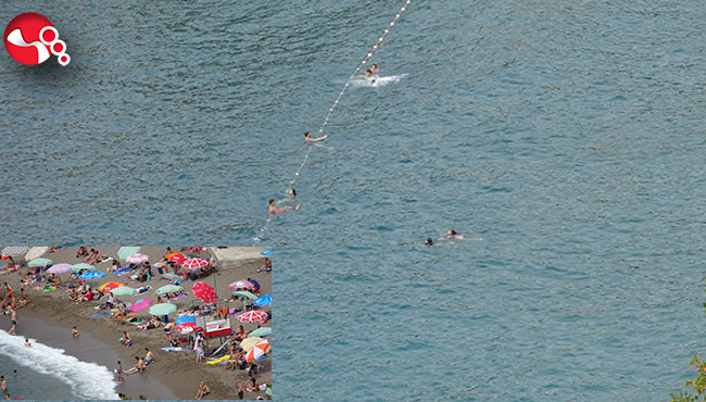 Zonguldak'ta vatandaşlar, 30 dereceyi aşan hava sıcaklığı nedeniyle plaja akın etti. Bazı vatandaşlar uzakta tek başına yüzerek korona virüs tedbirini elden bırakmadı, ipe doğru yüzen vatandaşlar da mesafeli durarak sosyal mesafeyi korudu.