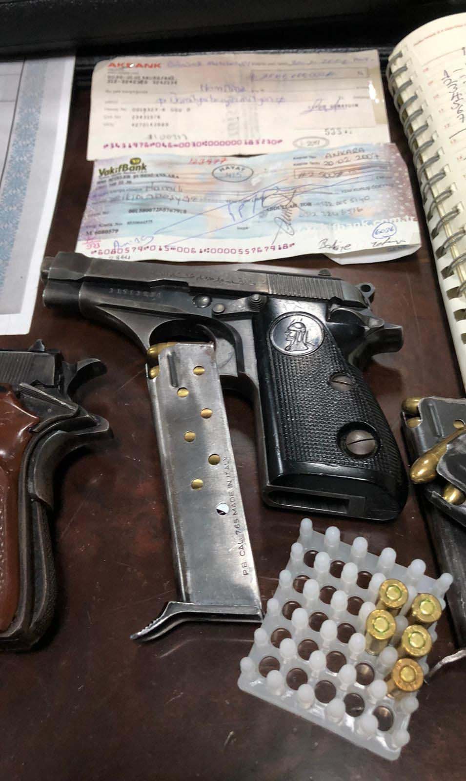 Mağdurlarını, senetlerin üzerine yaptıkları özel bir uygulama ile dolandırdığı iddia edilen 5 şahsın ikamet ettiği evlerine ve avukatlık ofisine yapılan aramalarda; birçok mağdura ait senet ve çek koçanı, 4 adet ruhsatsız tabanca, kimlik, sürücü belgesi gibi belgeleri basmaya yarayan elektronik cihaz ve çok sayıda kılıç, balta ele geçirildiği kaydedildi.