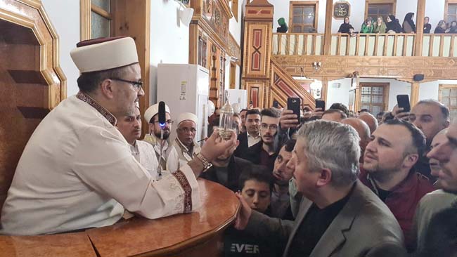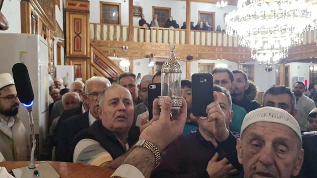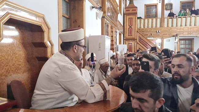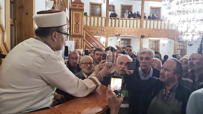 Zonguldak Alaplı'da Kadir Gecesi dolayısıyla 250 yıllık Merkez Camii'nde Sakal-ı Şerif'i görmek isteyenler yoğunluk oluşturdu.