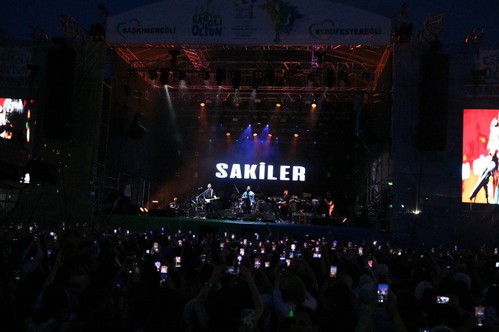 Sahneye ilk çıkan Sakiler, özellikle genç hayranlarının büyük ilgisiyle karşılaştı. Binlerce Ereğlili, şarkılara coşkuyla eşlik etti.