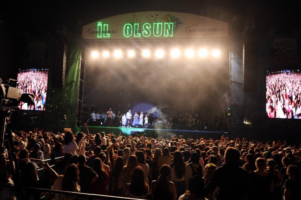 Belediye Başkanı Halil Posbıyık, eşi Neriman Posbıyık’la sahneye çıkarak sanatçılara hediye takdiminde bulundu. Başkan Posbıyık, Türkiye’nin en büyük festivalini gerçekleştirmenin mutluluğunu yaşadıklarını belirtti. Posbıyık ayrıca alandakilerle birlikte hep bir ağızdan ‘Sevgi, Barış, Dostluk.. Ereğli İl Olsun’ diye haykırdı.