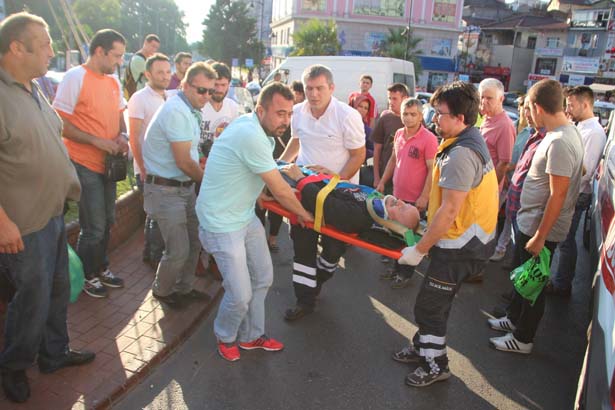 Kaza akşam saatlerinde PTT kavşağında meydana geldi. Alınan bilgilere göre plakasız ATV tarzı motosiklet ile kavşaktan dönüş yapmaya çalışan sürücüsü Abdurrahman Bayar(61) direksiyon hakimiyetini kaybederek önünde ki Bülent Demiriz'in (41) kullandığı 05 DT 242 plakalı otomobile arkadan çarptı. Çarpmanın etkisi ile ATV devrilirken, sürücü Abdurrahman Bayar yere düştü. Kafasından ve göğsünden aldığı darbe ile yaralanan sürücünün yardımına şans eseri kaza yerinden geçen sağlık görevlileri müdahale etti. Haber verilen ambulans beklenirken, Bayar yerde hareketsiz şekilde yatırıldı. Yaralı Sürücü Abdurrahman Bayar, cebinden cep telefonunu alarak yakınlarını aramak isteyen vatandaşlara ailesini aramamasını istedi. Otomobil sürücüsü Bülent Demiriz ise Bayar'ın başında bir an olsun ayrılmadı. Olay yerine gelen sağlık ekipleri yaralıya yaptıkları ilk müdahalenin ardında özel hastaneye kaldırdı. Otomobil sürücüsü Bülent Demiriz, ATV sürücüsü Abdurrahman Bayar'ın kendisi geçtikten sonra arkadan çarptığını söyledi. Sürücü Demiriz ifadesi alınmak üzere karakola götürüldü. Özel hastanede tedavi altına alınan Abdurrahman Bayar'ın hayati tehlikesinin bulunmadığı ancak göğsünden aldığı darbe nedeniyle kontrol amaçlı Zonguldak' a sevk edilebileceği öğrenildi.