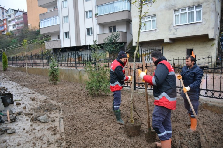 çalışmalarının ardından yeşil alan ve ağaçlandırma çalışmalarına başlandığını