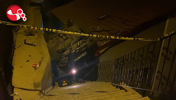 Zonguldak'ta bir kişi henüz bilinmeyen bir sebeple silahlı saldırıya uğradı. Yaralanan adam aracıyla bir evin çatısına uçtu.