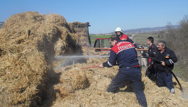 Çaycuma ilçesi Perşembe yolu üzerinde saman yüklü bir kamyonet seyir halindeyken yanmaya başladı. Sürücü Bayram Gebeş, Çaycuma Belediyesi İtfaiye Müdürlüğü'nü telefonla arayarak yardım istedi. İtfaiye ekipleri olay yerine gelerek yangına müdahale etti. Yapılan tüm müdahalelere rağmen yaklaşık 80 civarında saman balyası kül oldu. Kamyonet ise az hasarla kurtarıldı. Yapılan incelemede, yangının seyir halindeyken atılan sigara izmaritinden çıkmış olabileceği belirtildi. Olayla ilgili soruşturma başlatıldı.