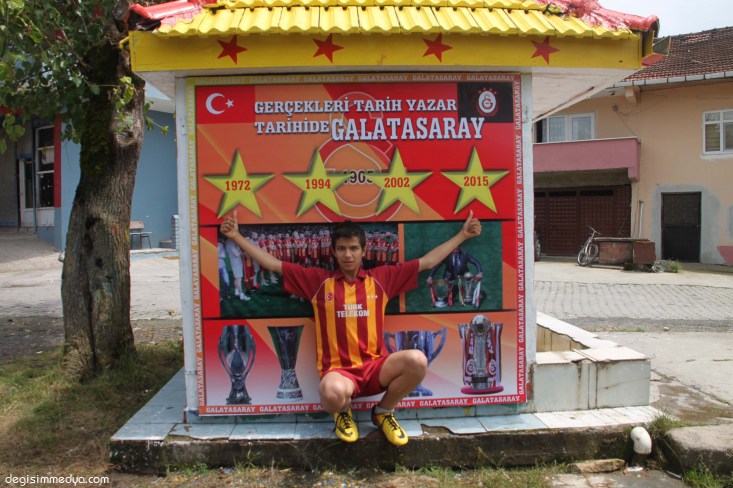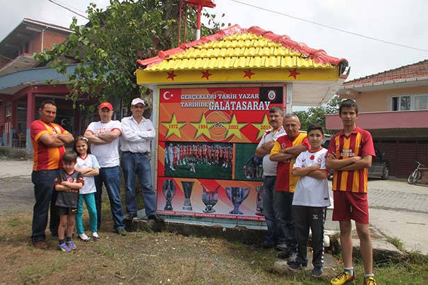 takımın renklerine boyanan ve köye dışarından gelenlerin de hatıra fotoğrafı