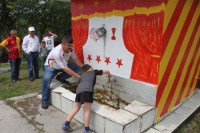 pankartının asılması ile çalışmayı tamamlayan Şamlar köyünün Galatasaraylı