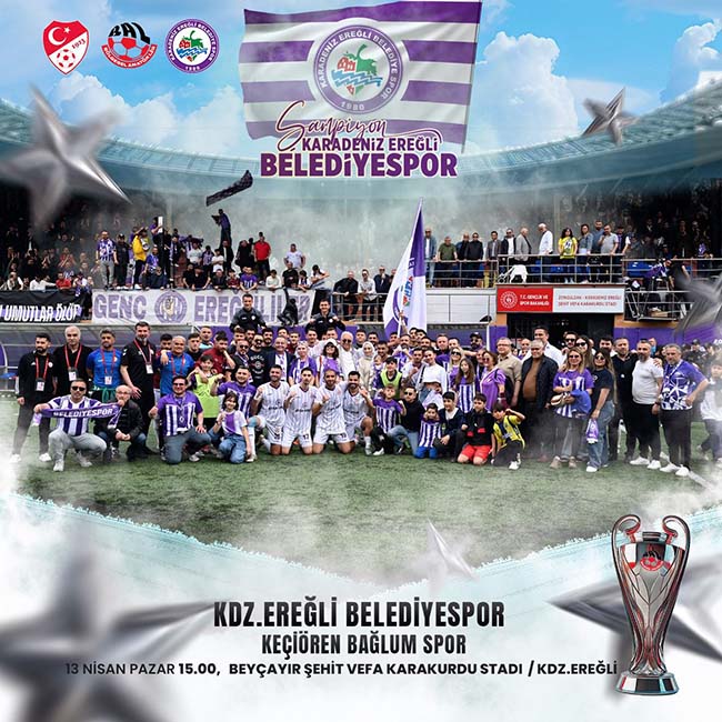 TFF Bölgesel Amatör (BAL) Ligi 27.Hafta karşılaşmasında Şampiyon Kdz.Ereğli Belediyespor, 13 Nisan Pazar Günü Şehit Vefa Karakurdu (Beyçayırı) Stadı’nda Keçiören Bağlum Spor ile karşılaşıyor.