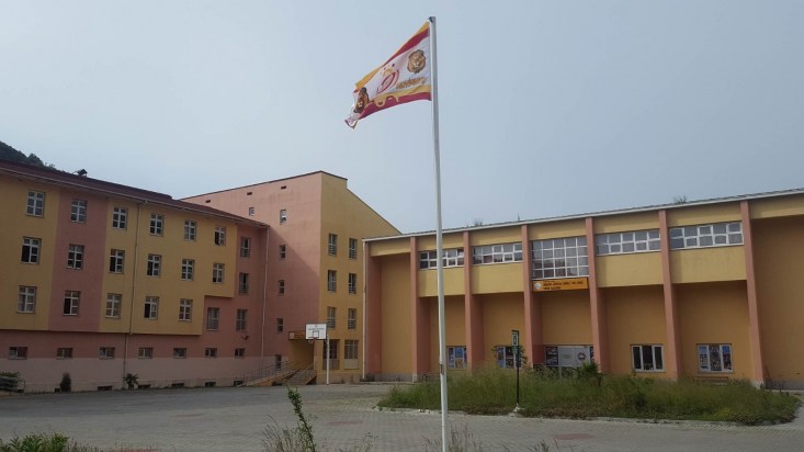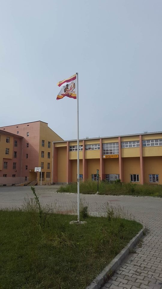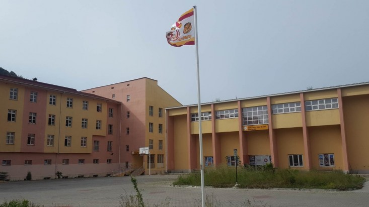 Zonguldak'ın Ereğli ilçesinde farklı takımların taraftarlarından oluşan Fen Lisesi öğrencileri tarafından okul bahçesinde ki bayrak diğerine bu sene şampiyonluk ipini göğüsleyen Galatasaray'ın bayrağını göndere çektiler.