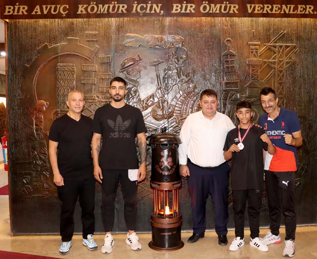 Türkiye Üst Minikler Boks Şampiyonası’nda 44 kiloda Türkiye Şampiyonu olan 14 yaşındaki Fırat Bozkurt, antrenörleri İshak Tiryaki ve Burak Tiryaki ile birlikte Genel Maden İşçileri Sendikası’nı ziyaret etti.