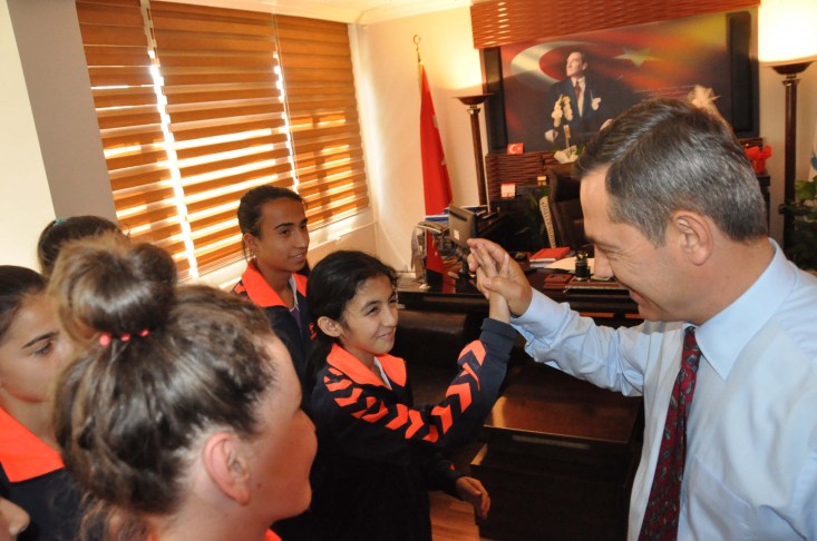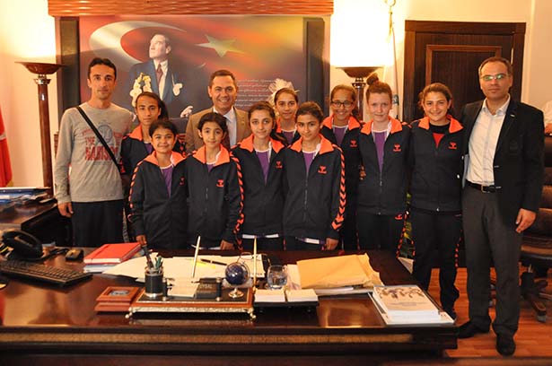 Türkiye Şampiyonu olan Karadeniz Ereğli Atatürk Ortaokulu Kız Futsal takımının idareci ve oyuncuları Kdz. Ereğli Belediye Başkanı Opr. Dr. Hüseyin Uysal'ı ziyaret etti.