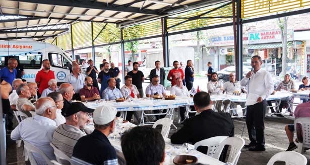 Başkan Uysal kahvaltı sonrası da pazaryerindeki incelemelerini sürdürürken, Pazar esnafı ile çay sohbeti yaptı.