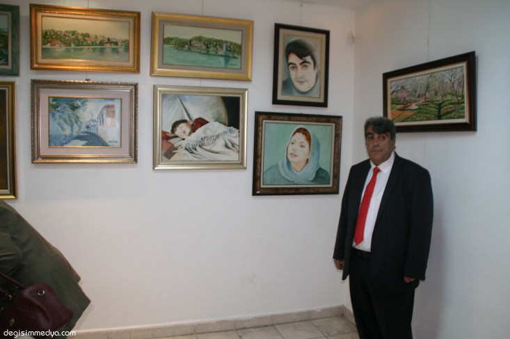 Açılışı atölyedeki sanatçılarla birlikte yapan Erdoğan Keskin, daha sonra resimler ve sanatçıları davetlilere tanıttı.