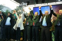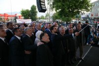 parti ziyaretinin ardından yaya olarak Anıtpark'a kadar mehter eşliğinde