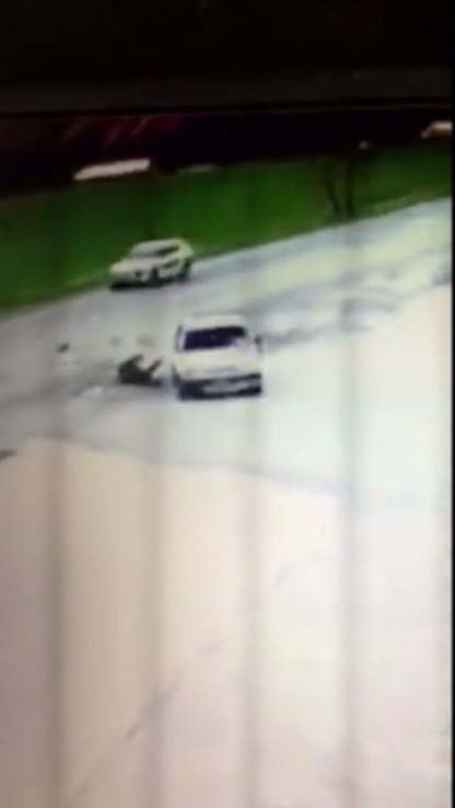 çarptığı ve sürücünün yola fırladığı görülüyor.