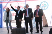 milletvekili Ercan Candan, yanında Hüseyin Uysal, arkalarında iki tane kadın