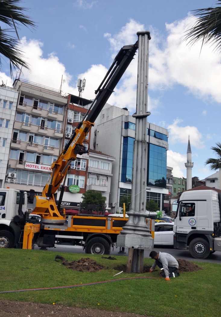 ömrünü tamamlayan 7 adet süs ve aydınlatma direkleri söküldü. Bu alanda peyzaj