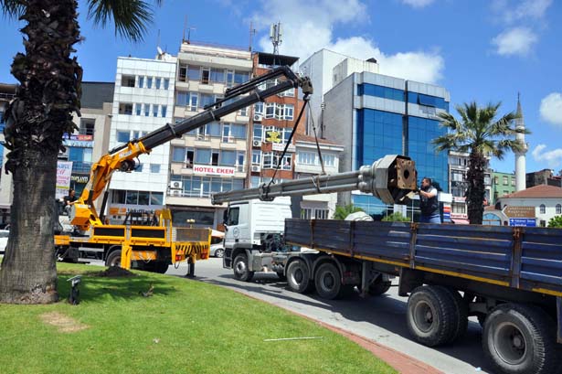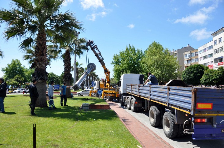 kavşağındaki süs direkleri de söküldü. Ortacami mevkiindeki DSİ su hatların