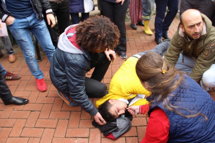 aniden fenalaşarak yere yığıldı. Çırpınarak kafasını yere vuran gencin