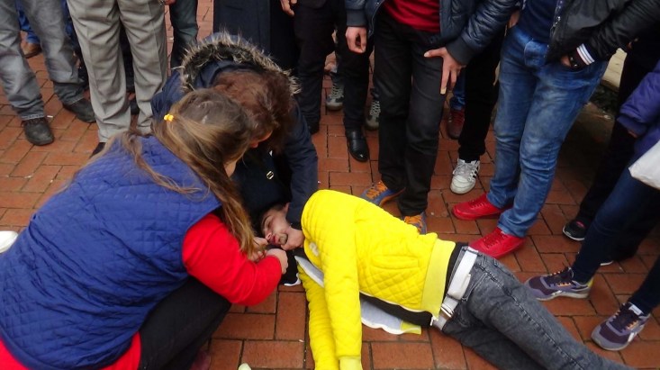 ilçesinde, sara krizi geçiren liseli gence müdahale eden vatandaşlar, ağzına